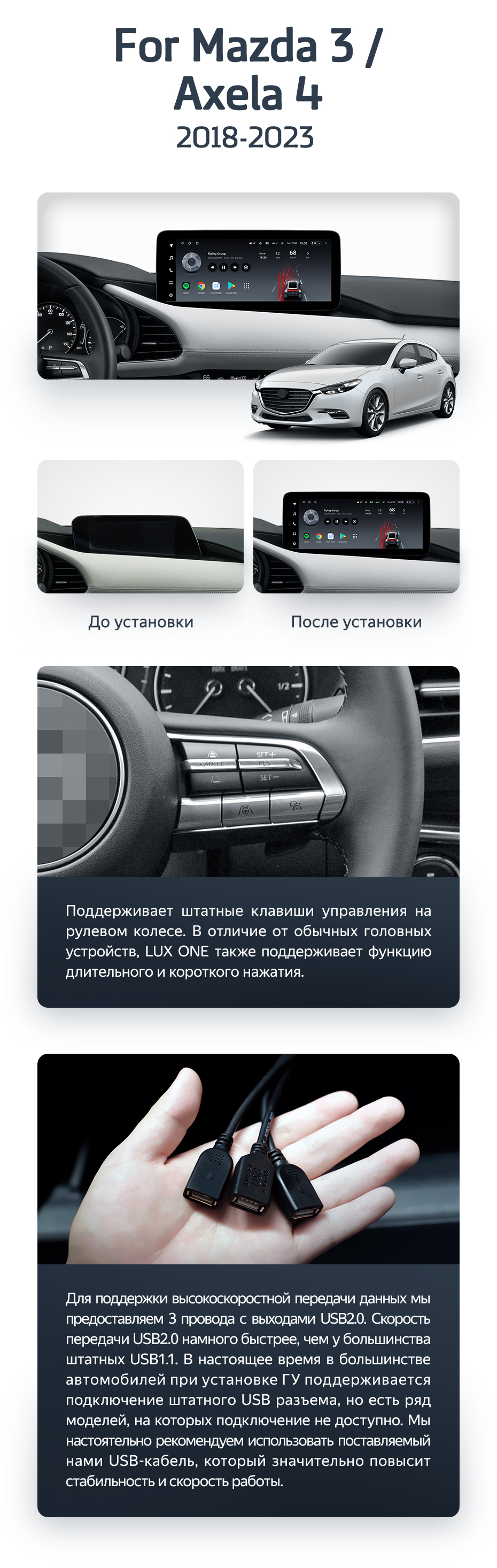 Полный комплект установки магнитолы Teyes с рамкой и проводкой можно выбрать в каталоге штатных магнитол Mazda 3 BP (2018-2023).