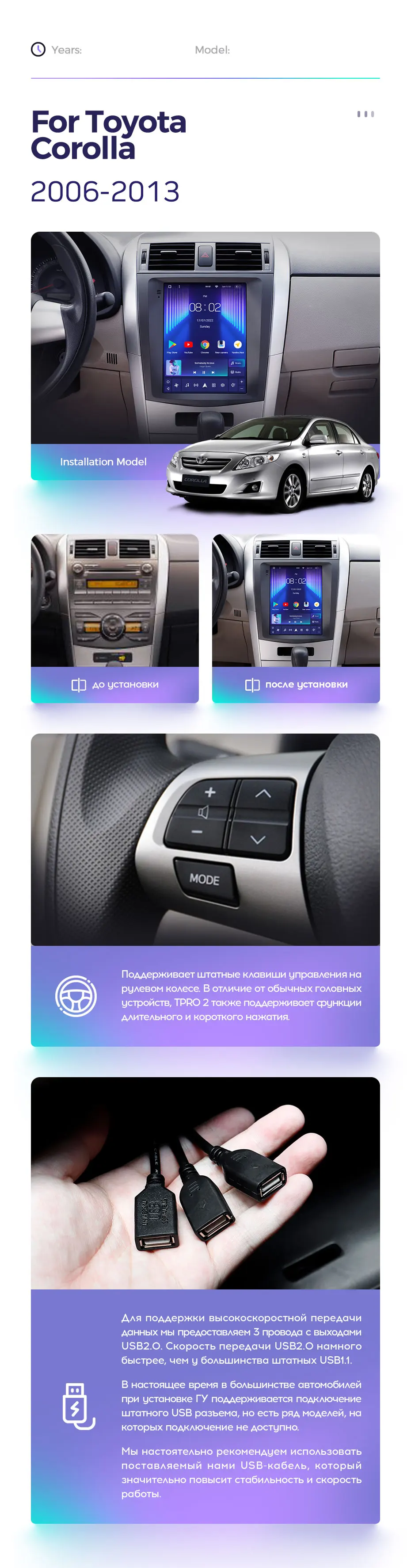 Штатная магнитола Tesla style Teyes TPRO 2 4/64 Toyota Corolla 10 E140 E150 (2006-2013) - купить всего за 45 300 руб. в интернет-магазине в Энгельсе Teyes.com.ru. ✓ Самый лучший выбор мультимедиа ✓ Лучшая замена штатному ГУ ✓ Тел. +7 (800) 775-31-74