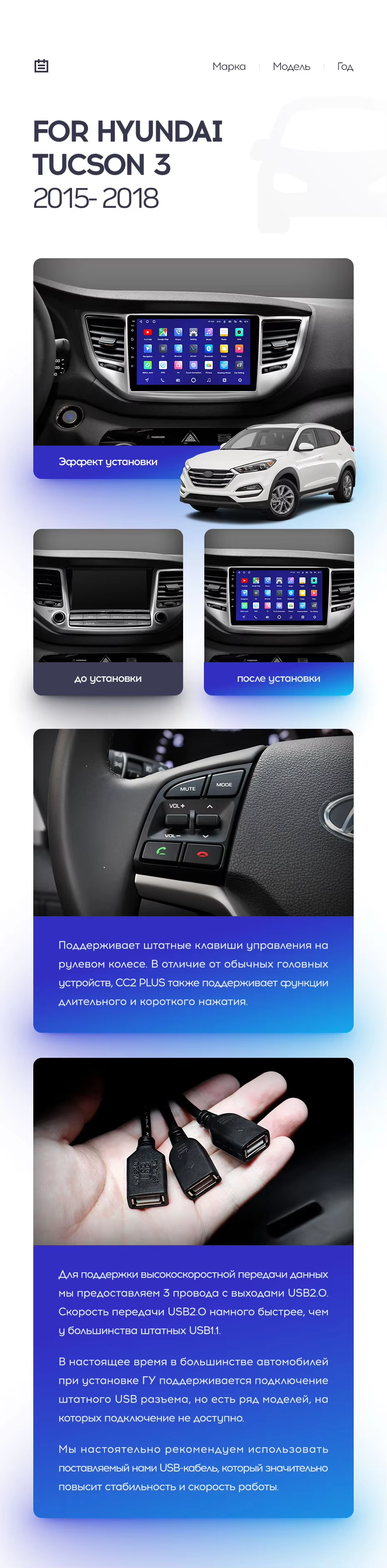 Штатная магнитола Teyes CC2 Plus 4/32 Hyundai Tucson 3 (2015-2018) Тип-A - купить всего за 33 800 руб. в интернет-магазине в Энгельсе Teyes.com.ru. ✓ Самый лучший выбор мультимедиа ✓ Лучшая замена штатному ГУ ✓ Тел. +7 (800) 775-31-74
