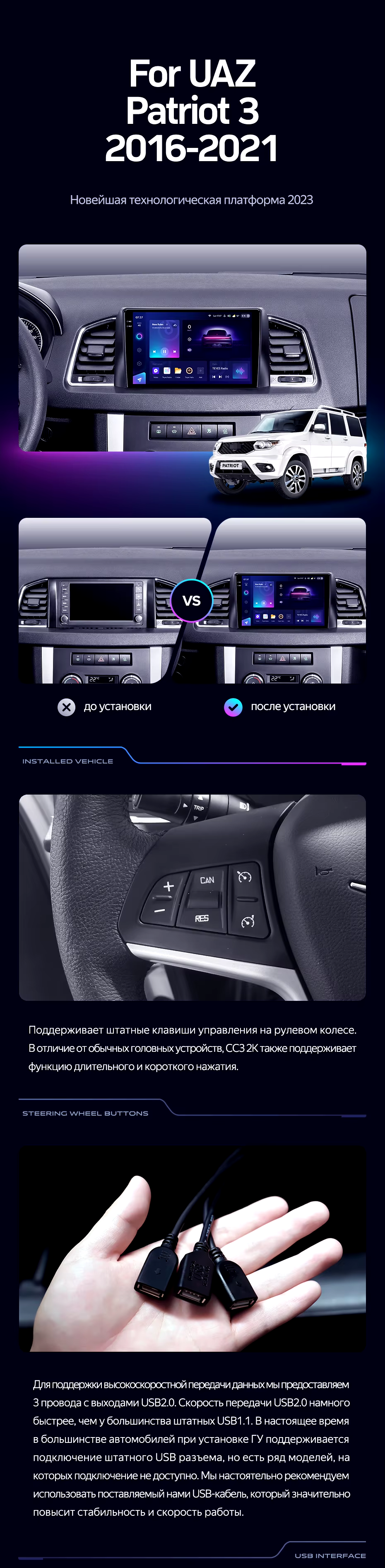 Штатная магнитола Teyes CC3 2K 4/32 UAZ Patriot 3 (2016-2021) F1 - купить всего за 39 100 руб. в интернет-магазине в Энгельсе Teyes.com.ru. ✓ Самый лучший выбор мультимедиа ✓ Лучшая замена штатному ГУ ✓ Тел. +7 (800) 775-31-74