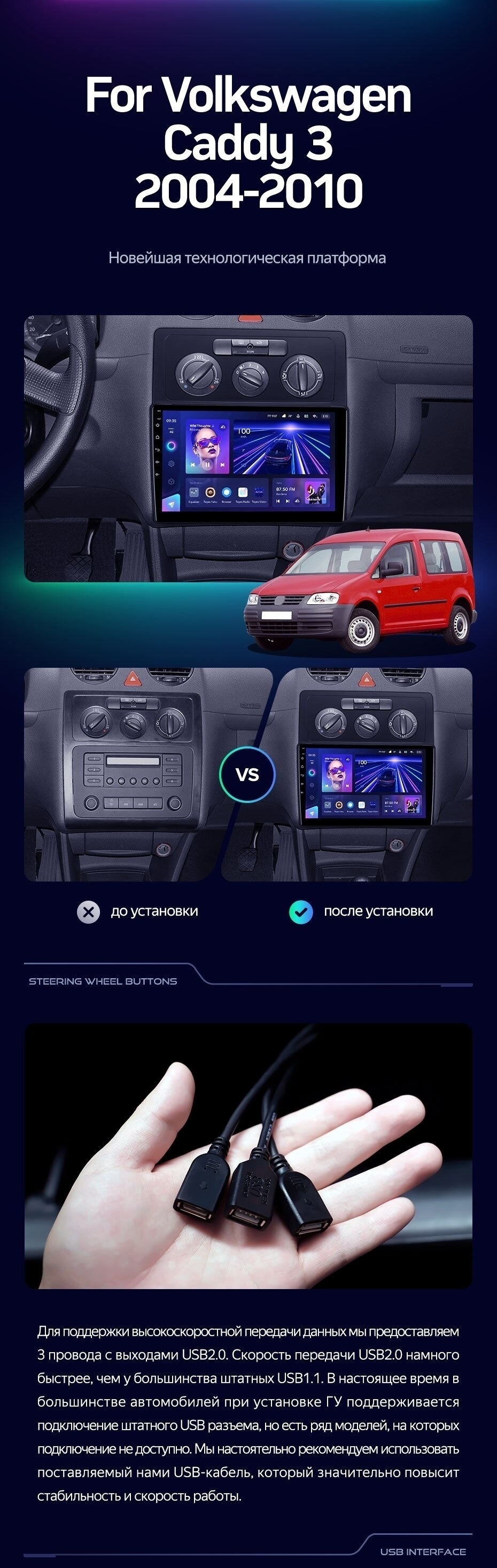 Штатная магнитола Teyes CC3 2K 4/32 Volkswagen Caddy 2K (2004-2010) - купить всего за 40 300 руб. в интернет-магазине в Энгельсе Teyes.com.ru. ✓ Самый лучший выбор мультимедиа ✓ Лучшая замена штатному ГУ ✓ Тел. +7 (800) 775-31-74