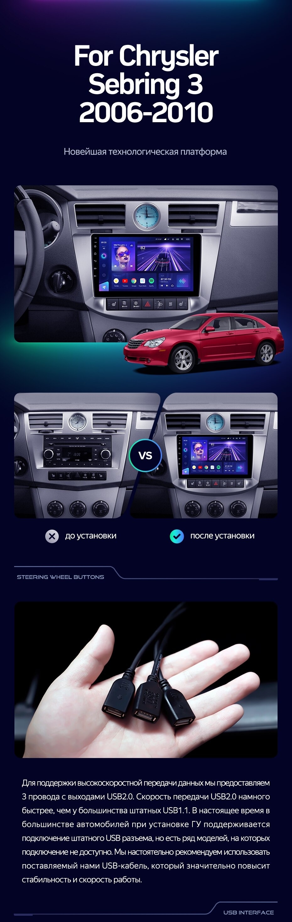 Штатная магнитола Teyes CC3 2K 360 6/128 Chrysler Sebring 3 JS (2006-2010) (13") - купить всего за 53 900 руб. в интернет-магазине в Энгельсе Teyes.com.ru. ✓ Самый лучший выбор мультимедиа ✓ Лучшая замена штатному ГУ ✓ Тел. +7 (800) 775-31-74