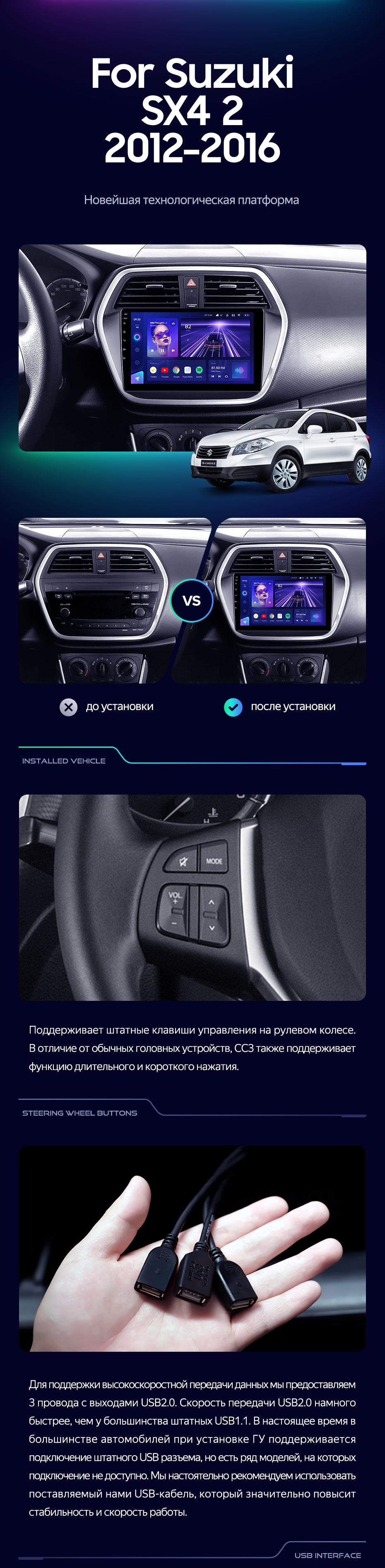 Штатная магнитола Teyes CC3 2K 360 6/128 Suzuki SX4 2 (2012-2016) (13") - купить всего за 52 100 руб. в интернет-магазине в Энгельсе Teyes.com.ru. ✓ Самый лучший выбор мультимедиа ✓ Лучшая замена штатному ГУ ✓ Тел. +7 (800) 775-31-74