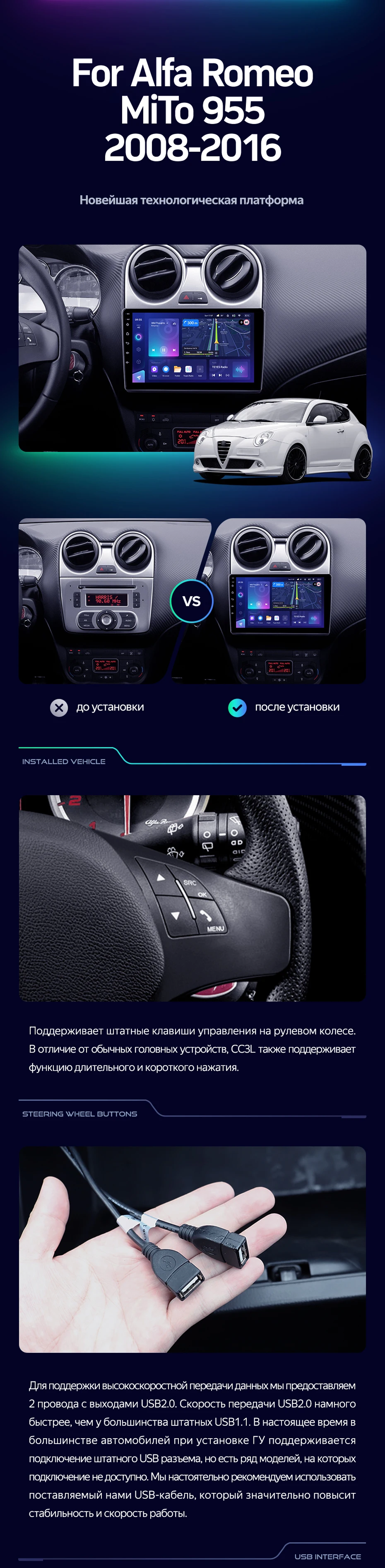 Штатная магнитола Teyes CC3 2K 4/32 Alfa Romeo MiTo 955 (2008-2016) - купить всего за 42 100 руб. в интернет-магазине в Энгельсе Teyes.com.ru. ✓ Самый лучший выбор мультимедиа ✓ Лучшая замена штатному ГУ ✓ Тел. +7 (800) 775-31-74