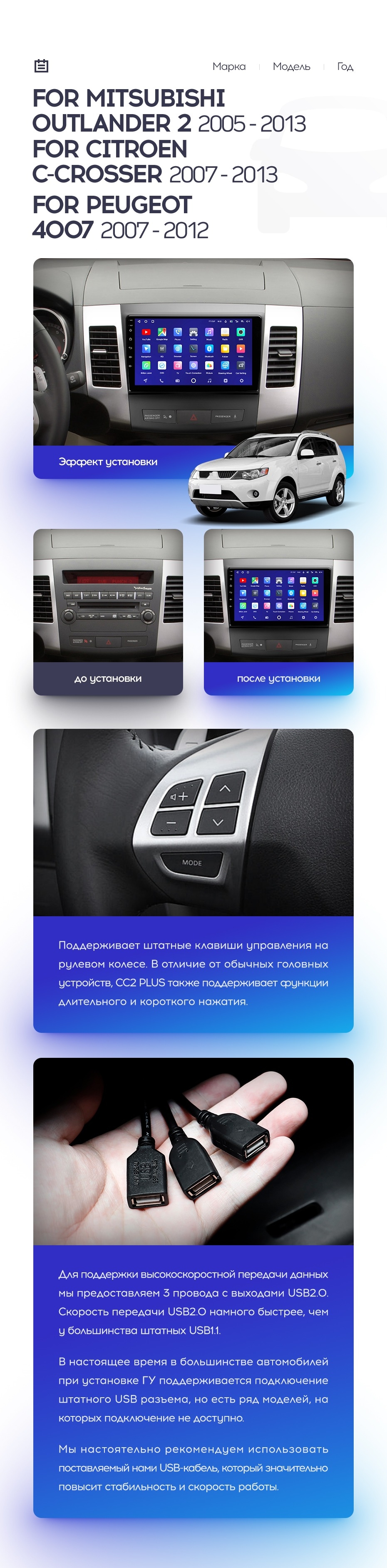 Штатная магнитола Teyes CC3 2K 4/32 Mitsubishi Outlander 2 (2005-2011) Тип-A (13") - купить всего за 40 870 руб. в интернет-магазине в Энгельсе Teyes.com.ru. ✓ Самый лучший выбор мультимедиа ✓ Лучшая замена штатному ГУ ✓ Тел. +7 (800) 775-31-74
