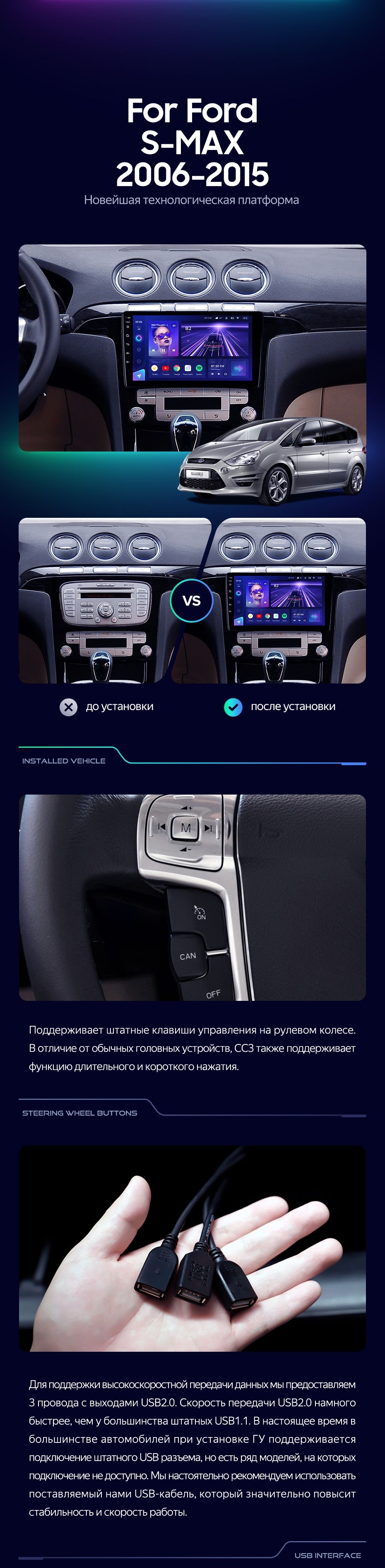 Штатная магнитола Teyes CC3 2K 4/64 Ford S-MAX (2006-2015) F2 - купить всего за 45 000 руб. в интернет-магазине в Энгельсе Teyes.com.ru. ✓ Самый лучший выбор мультимедиа ✓ Лучшая замена штатному ГУ ✓ Тел. +7 (800) 775-31-74