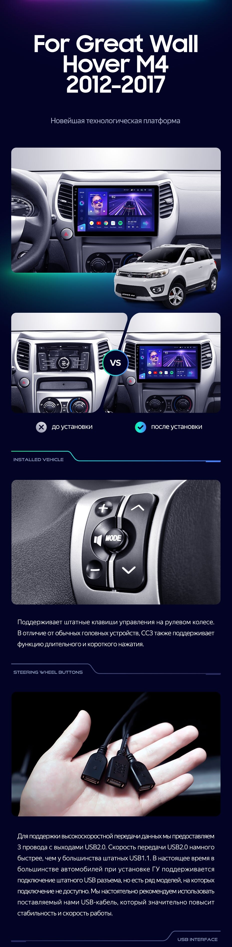 Штатная магнитола Teyes CC3 2K 4/64 Great Wall Hover M4 (2012-2017) (13") - купить всего за 43 300 руб. в интернет-магазине в Энгельсе Teyes.com.ru. ✓ Самый лучший выбор мультимедиа ✓ Лучшая замена штатному ГУ ✓ Тел. +7 (800) 775-31-74