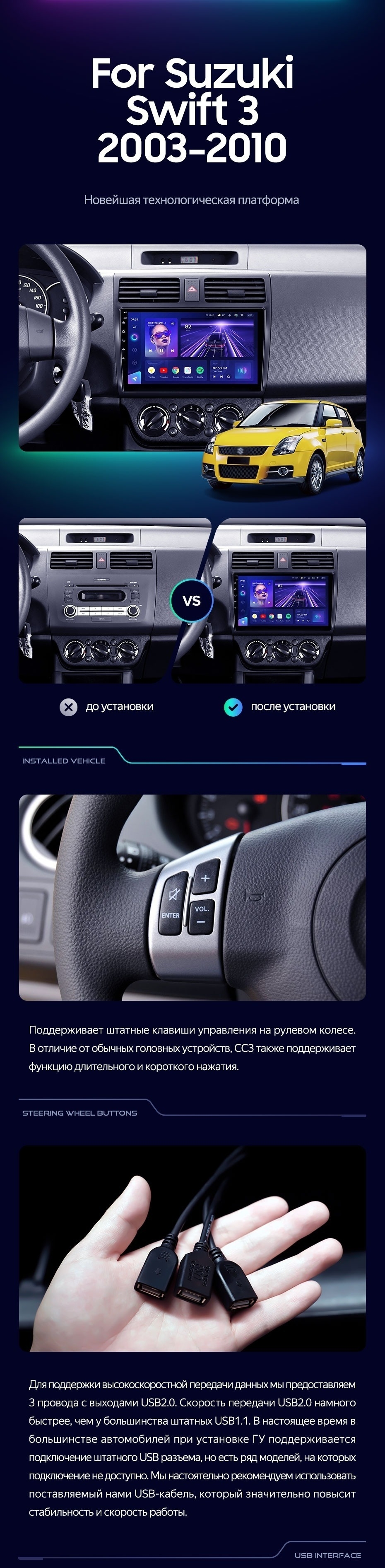 Штатная магнитола Teyes CC3 2K 4/64 Suzuki Swift 3 (2003-2010) - купить всего за 47 400 руб. в интернет-магазине в Энгельсе Teyes.com.ru. ✓ Самый лучший выбор мультимедиа ✓ Лучшая замена штатному ГУ ✓ Тел. +7 (800) 775-31-74