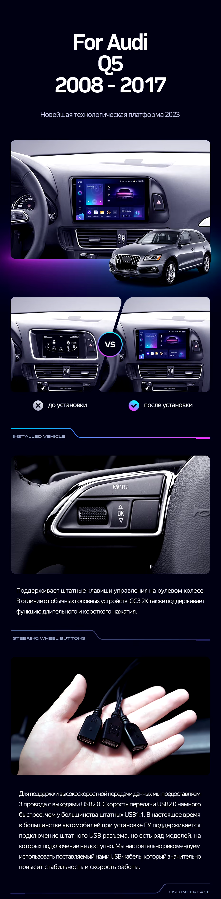 Штатная магнитола Teyes CC3 2K 6/128 Audi Q5 8R (2008-2017) Тип-A (13") - купить всего за 50 310 руб. в интернет-магазине в Энгельсе Teyes.com.ru. ✓ Самый лучший выбор мультимедиа ✓ Лучшая замена штатному ГУ ✓ Тел. +7 (800) 775-31-74