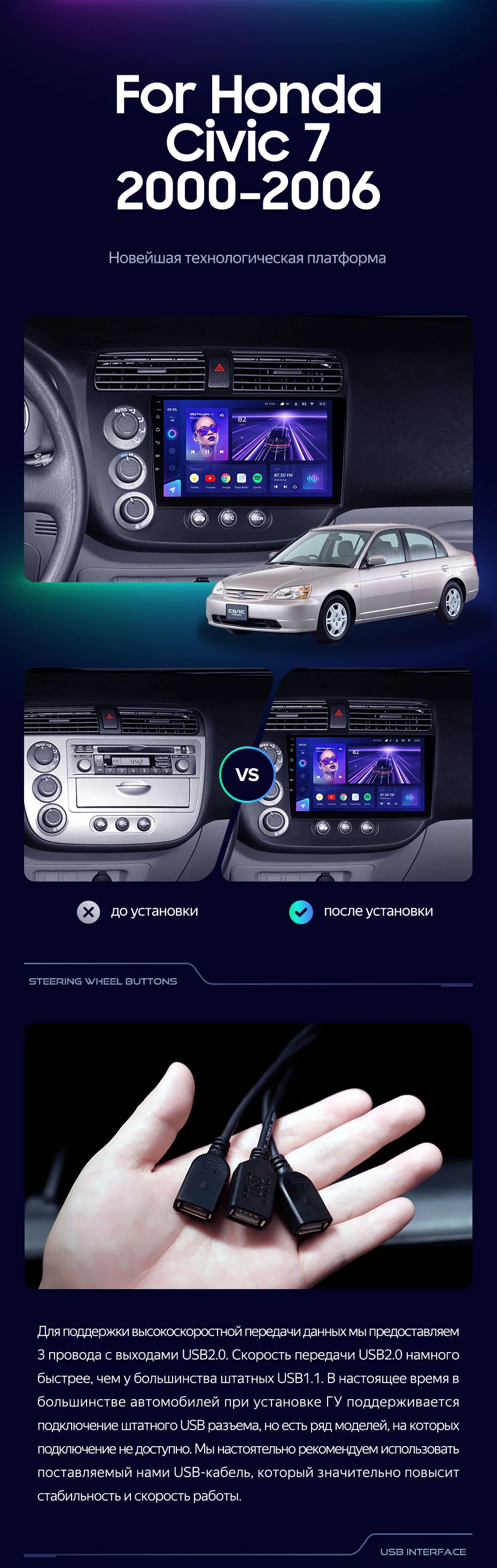 Штатная магнитола Teyes CC3 2K 6/128 Honda Civic 7 (2000-2006) F1 (13") - купить всего за 47 260 руб. в интернет-магазине в Энгельсе Teyes.com.ru. ✓ Самый лучший выбор мультимедиа ✓ Лучшая замена штатному ГУ ✓ Тел. +7 (800) 775-31-74