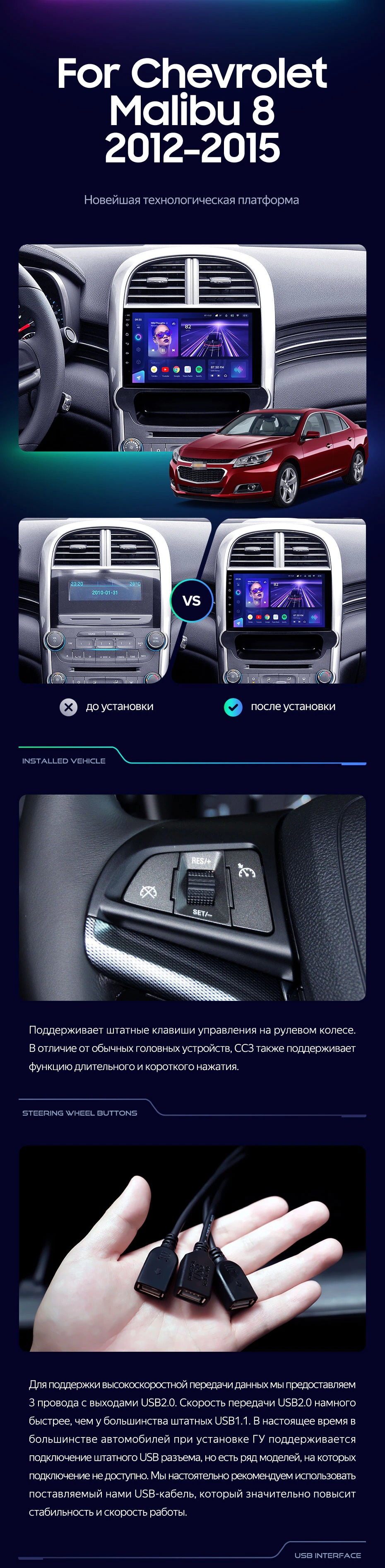 Штатная магнитола Teyes CC3 4/32 Chevrolet Malibu 8 (2012-2015) - купить всего за 33 290 руб. в интернет-магазине в Энгельсе Teyes.com.ru. ✓ Самый лучший выбор мультимедиа ✓ Лучшая замена штатному ГУ ✓ Тел. +7 (800) 775-31-74