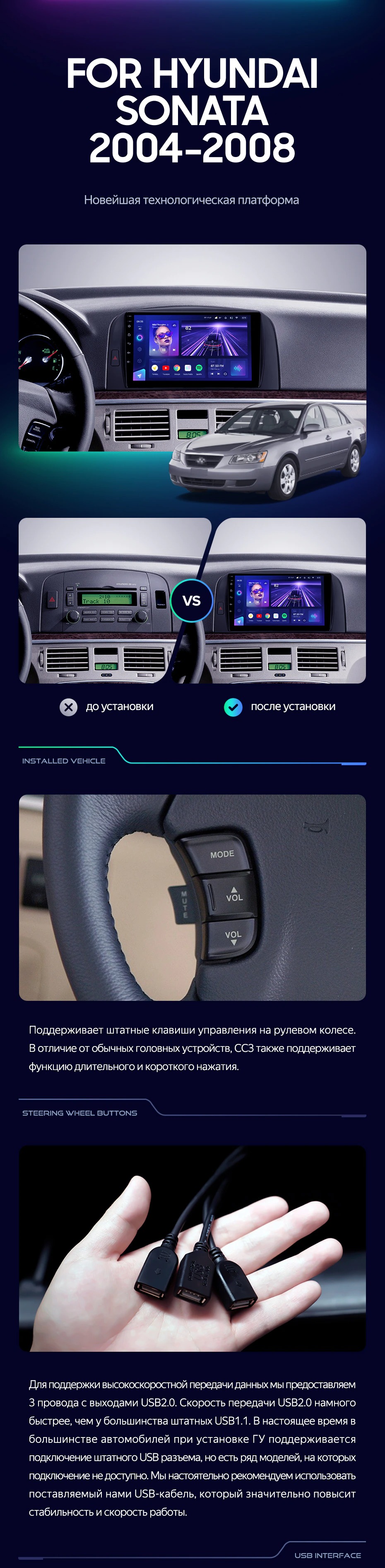 Штатная магнитола Teyes CC3 4/32 Hyundai Sonata NF (2004-2008) - купить всего за 32 230 руб. в интернет-магазине в Энгельсе Teyes.com.ru. ✓ Самый лучший выбор мультимедиа ✓ Лучшая замена штатному ГУ ✓ Тел. +7 (800) 775-31-74
