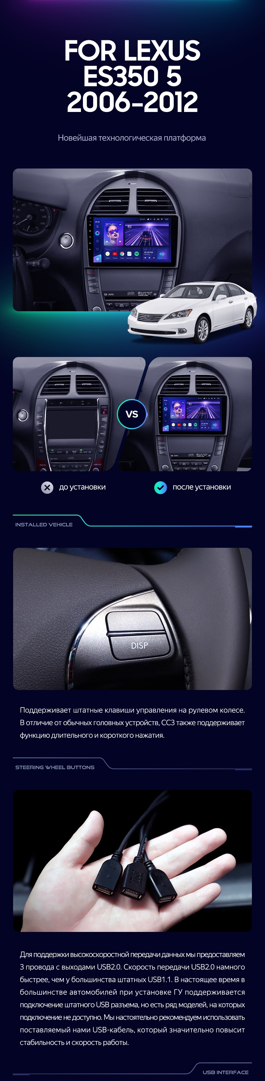 Штатная магнитола Teyes CC3 4/32 Lexus ES350 5 V XV40 (2006-2012) Тип-C - купить всего за 35 730 руб. в интернет-магазине в Энгельсе Teyes.com.ru. ✓ Самый лучший выбор мультимедиа ✓ Лучшая замена штатному ГУ ✓ Тел. +7 (800) 775-31-74