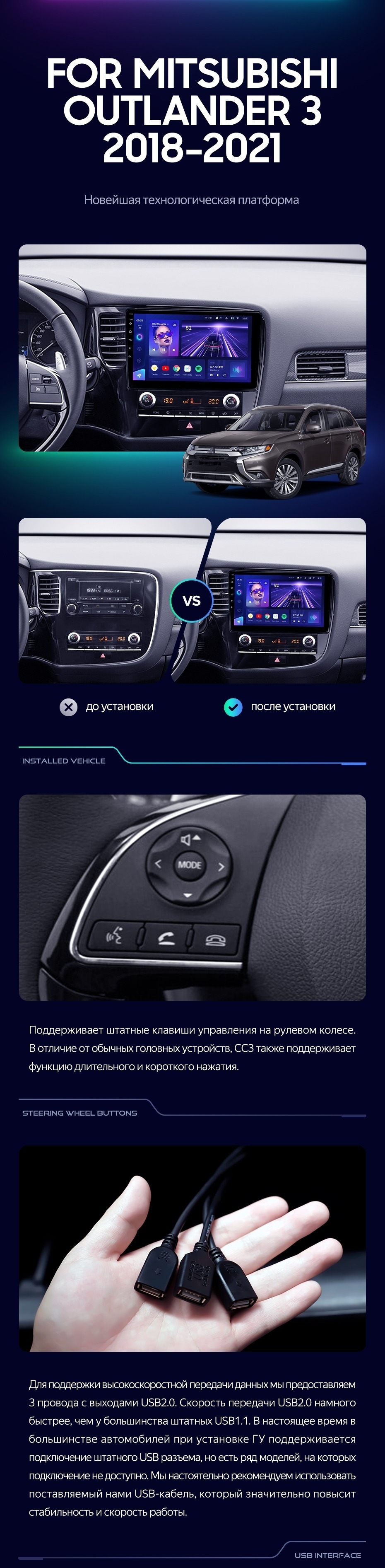 Штатная магнитола Teyes CC3 4/32 Mitsubishi Outlander 3 (2018-2021) - купить всего за 33 830 руб. в интернет-магазине в Энгельсе Teyes.com.ru. ✓ Самый лучший выбор мультимедиа ✓ Лучшая замена штатному ГУ ✓ Тел. +7 (800) 775-31-74
