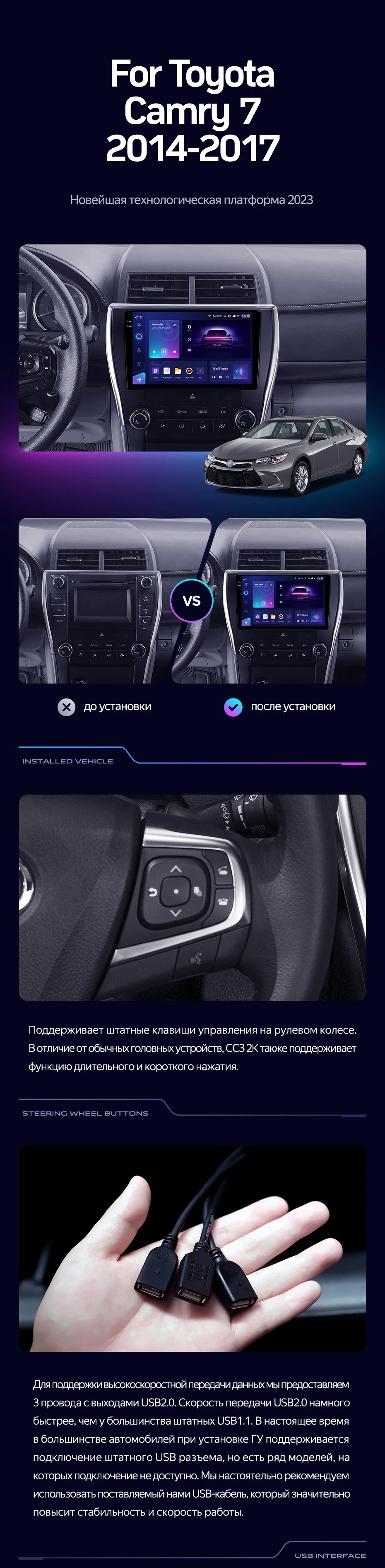 Штатная магнитола Teyes CC3 4/32 Toyota Camry 7 XV 50 55 (2014-2017) (North America) F5 - купить всего за 32 850 руб. в интернет-магазине в Энгельсе Teyes.com.ru. ✓ Самый лучший выбор мультимедиа ✓ Лучшая замена штатному ГУ ✓ Тел. +7 (800) 775-31-74