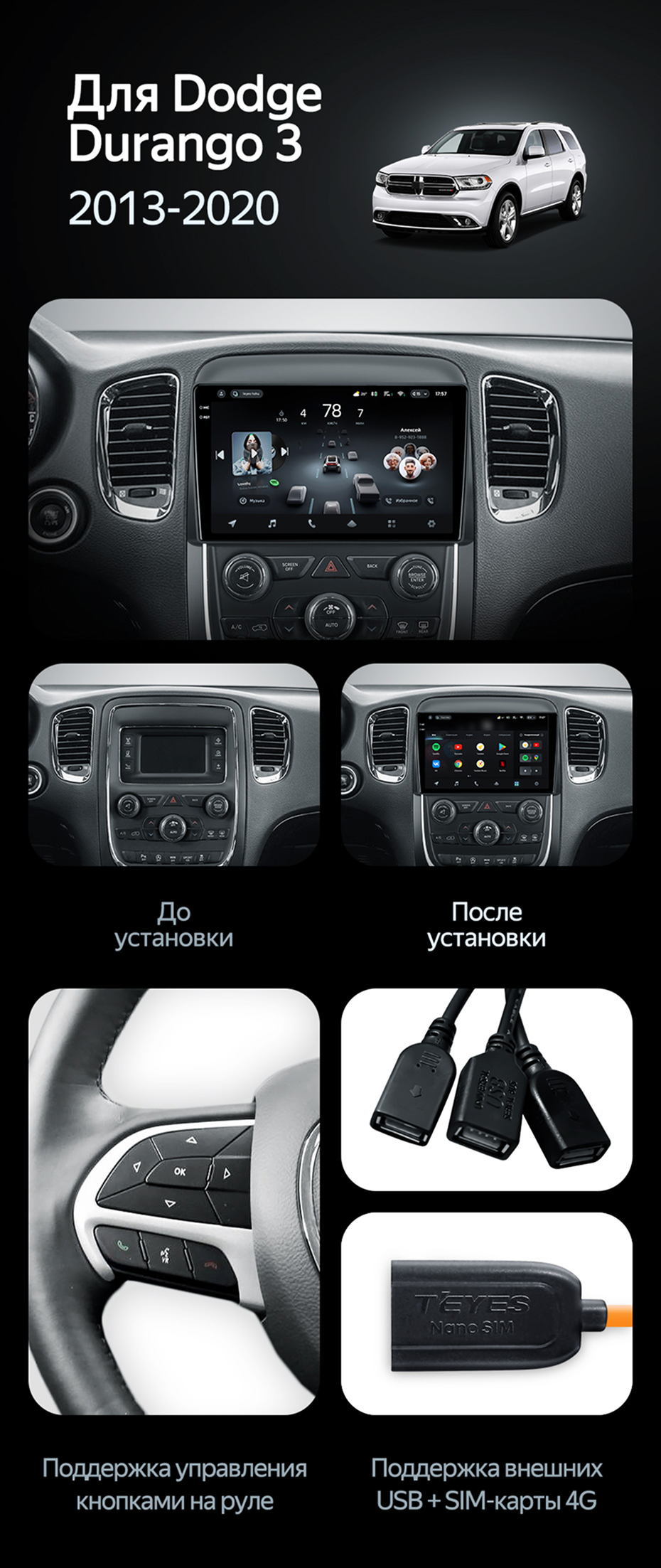 Штатная магнитола Teyes CC3 4/32 Dodge Durango 3 (2013-2020) - купить всего за 35 130 руб. в интернет-магазине в Энгельсе Teyes.com.ru. ✓ Самый лучший выбор мультимедиа ✓ Лучшая замена штатному ГУ ✓ Тел. +7 (800) 775-31-74