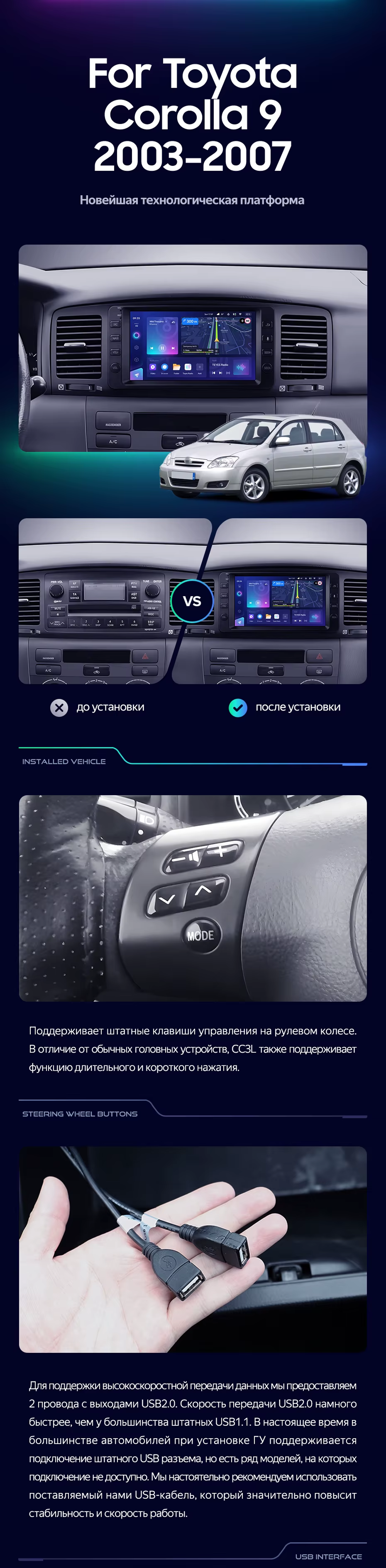 Штатная магнитола Teyes CC3 4/32 Toyota Corolla 9 E120 E130 (2003-2007) 7" - купить всего за 32 500 руб. в интернет-магазине в Энгельсе Teyes.com.ru. ✓ Самый лучший выбор мультимедиа ✓ Лучшая замена штатному ГУ ✓ Тел. +7 (800) 775-31-74