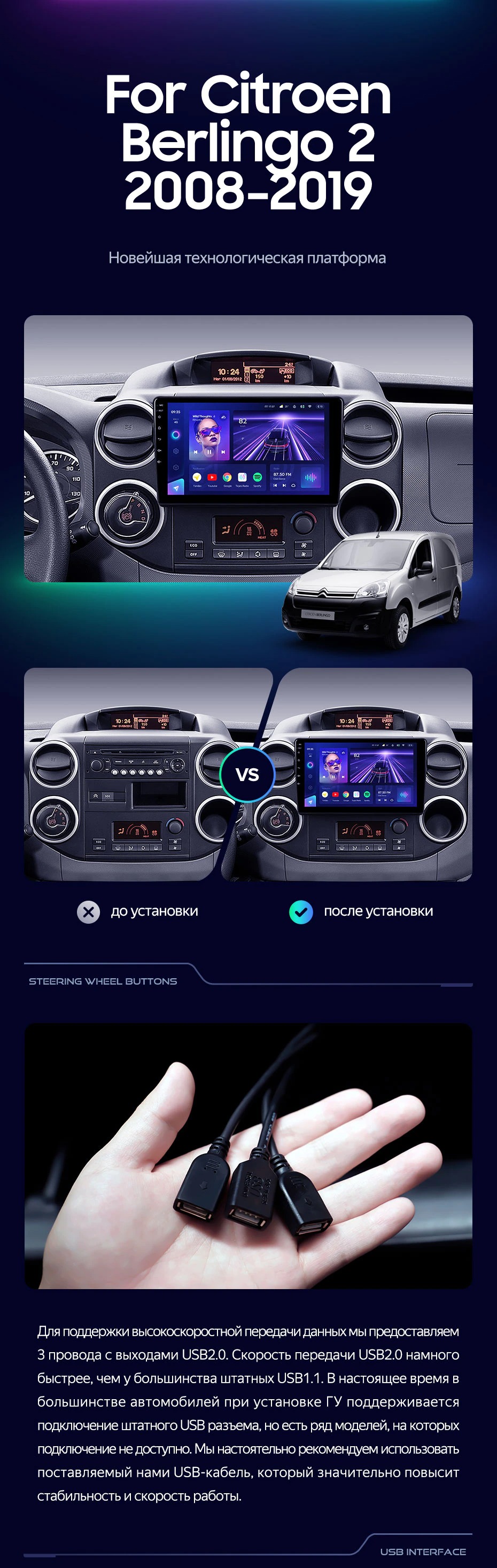 Штатная магнитола Teyes CC3L 4/32 Citroen Berlingo 2 B9 (2008-2019) - купить всего за 28 900 руб. в интернет-магазине в Энгельсе Teyes.com.ru. ✓ Самый лучший выбор мультимедиа ✓ Лучшая замена штатному ГУ ✓ Тел. +7 (800) 775-31-74