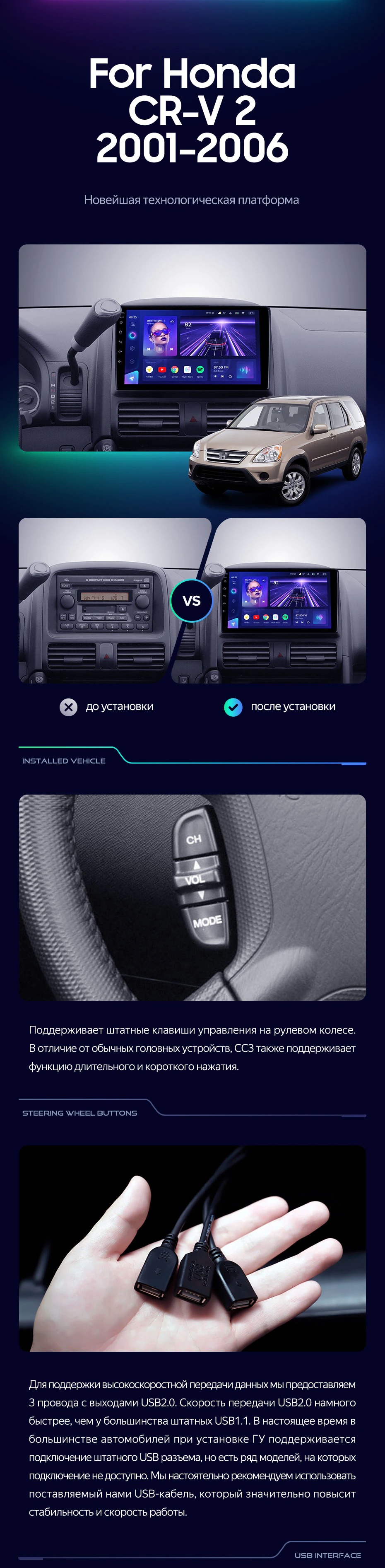 Штатная магнитола Teyes CC3L 4/32 Honda CR-V 2 (2001-2006) - купить всего за 28 150 руб. в интернет-магазине в Энгельсе Teyes.com.ru. ✓ Самый лучший выбор мультимедиа ✓ Лучшая замена штатному ГУ ✓ Тел. +7 (800) 775-31-74