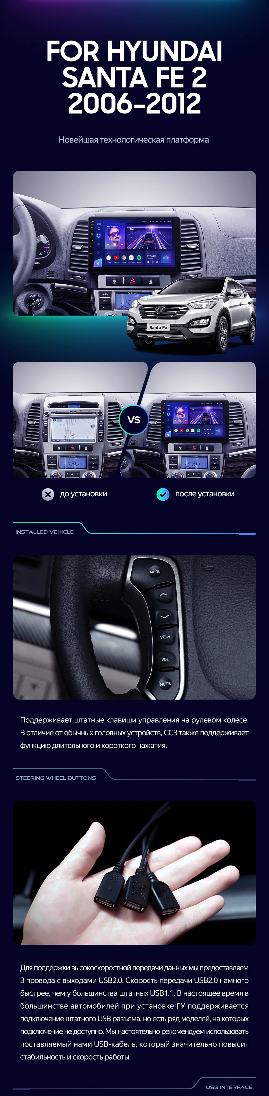 Штатная магнитола Teyes CC3L 4/32 Hyundai Santa Fe 2 (2006-2012) - купить всего за 28 440 руб. в интернет-магазине в Энгельсе Teyes.com.ru. ✓ Самый лучший выбор мультимедиа ✓ Лучшая замена штатному ГУ ✓ Тел. +7 (800) 775-31-74