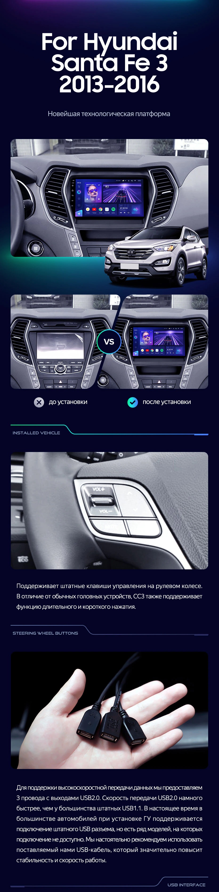 Штатная магнитола Teyes CC3L 4/32 Hyundai Santa Fe 3 (2013-2016) Тип-B - купить всего за 29 500 руб. в интернет-магазине в Энгельсе Teyes.com.ru. ✓ Самый лучший выбор мультимедиа ✓ Лучшая замена штатному ГУ ✓ Тел. +7 (800) 775-31-74