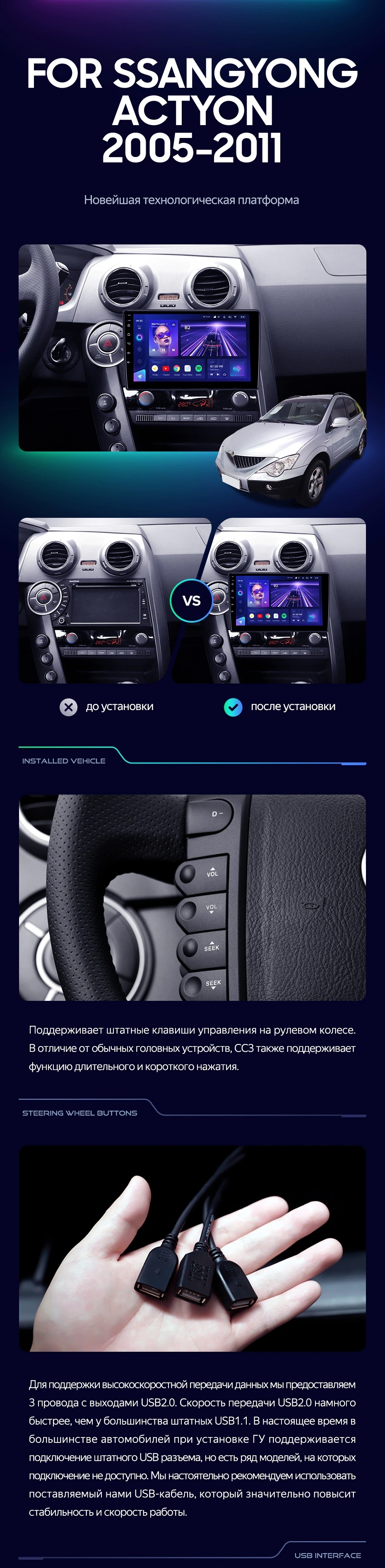 Штатная магнитола Teyes CC3L 4/32 SsangYong Actyon C100 (2005-2011) - купить всего за 28 180 руб. в интернет-магазине в Энгельсе Teyes.com.ru. ✓ Самый лучший выбор мультимедиа ✓ Лучшая замена штатному ГУ ✓ Тел. +7 (800) 775-31-74