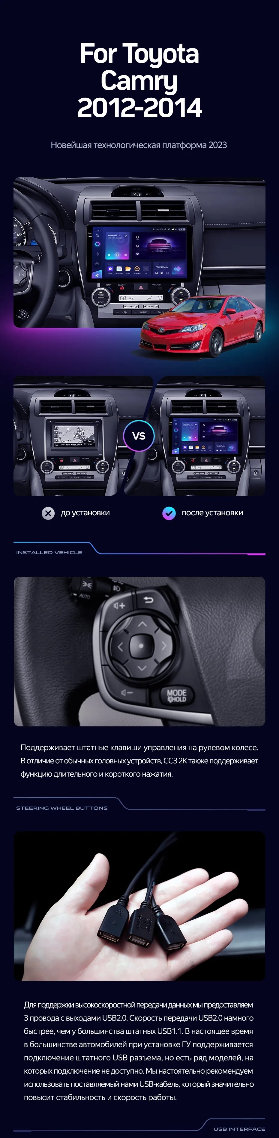 Штатная магнитола Teyes CC3L WiFi 2/32 Toyota Camry 7 XV 50 55 (2012-2014) Америка - купить всего за 17 100 руб. в интернет-магазине в Энгельсе Teyes.com.ru. ✓ Самый лучший выбор мультимедиа ✓ Лучшая замена штатному ГУ ✓ Тел. +7 (800) 775-31-74