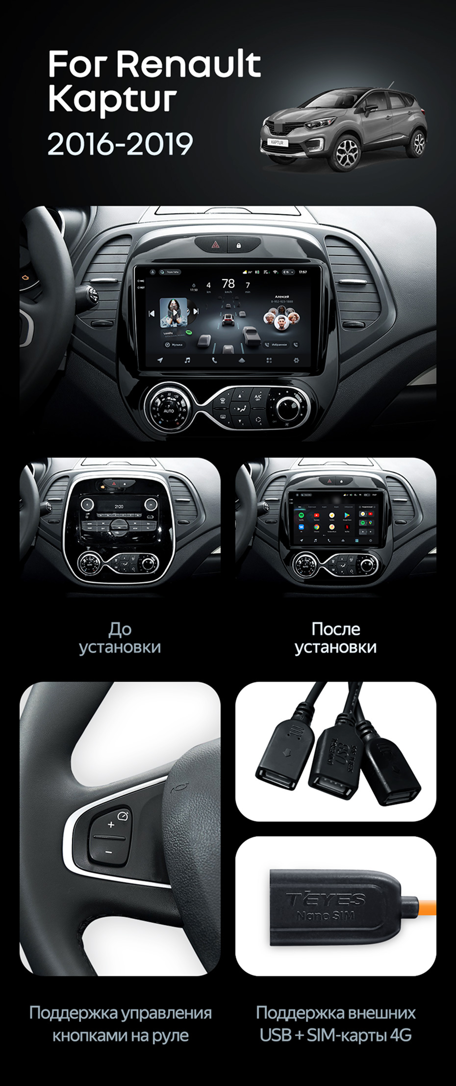 Штатная магнитола Teyes CC4 6/64 Renault Kaptur (2016-2019) F2 - купить всего за 44 420 руб. в интернет-магазине в Энгельсе Teyes.com.ru. ✓ Самый лучший выбор мультимедиа ✓ Лучшая замена штатному ГУ ✓ Тел. +7 (800) 775-31-74