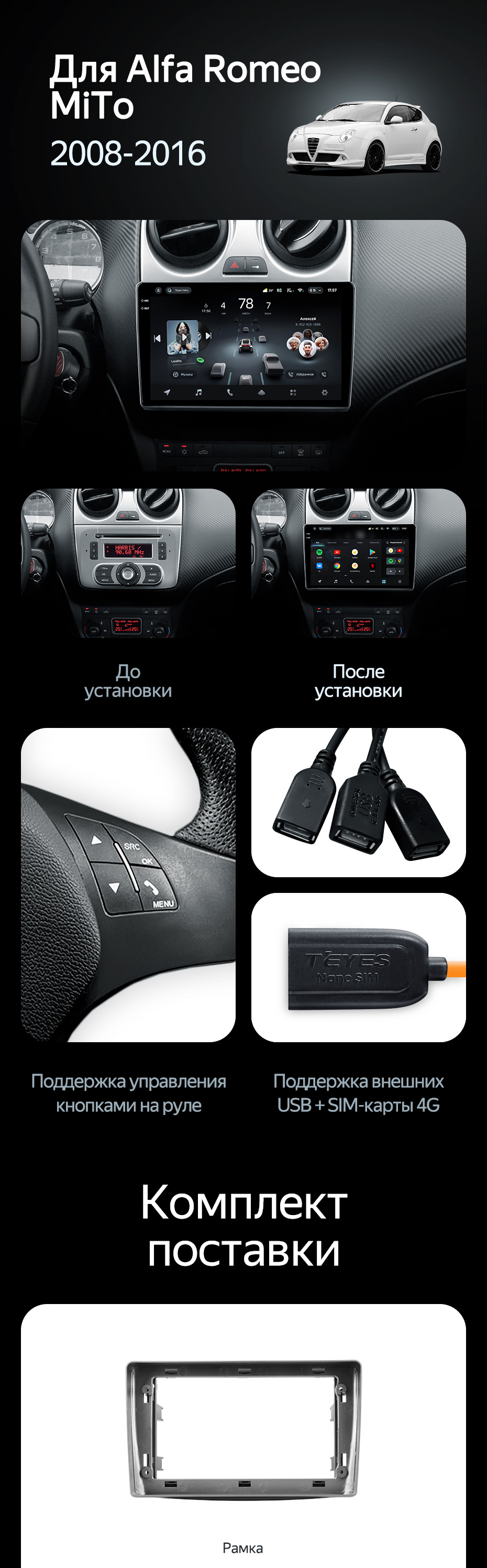 Штатная магнитола Teyes CC4 8/128 Alfa Romeo MiTo 955 (2008-2016) - купить всего за 50 700 руб. в интернет-магазине в Энгельсе Teyes.com.ru. ✓ Самый лучший выбор мультимедиа ✓ Лучшая замена штатному ГУ ✓ Тел. +7 (800) 775-31-74