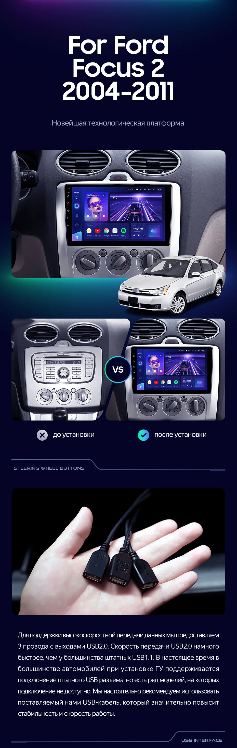 Штатная магнитола Teyes CC4 8/128 Ford Focus 2 Mk 2 (2004-2011) F2 - купить всего за 47 530 руб. в интернет-магазине в Энгельсе Teyes.com.ru. ✓ Самый лучший выбор мультимедиа ✓ Лучшая замена штатному ГУ ✓ Тел. +7 (800) 775-31-74