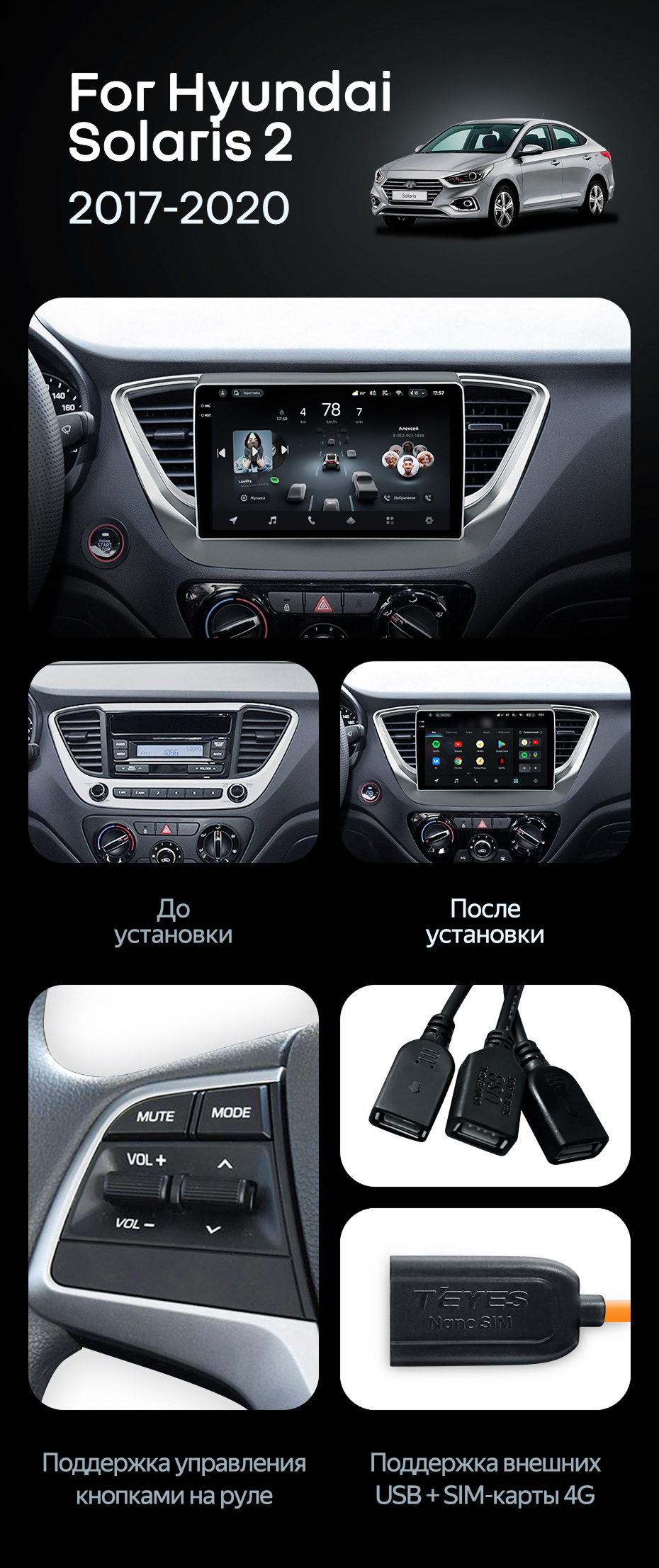 Штатная магнитола Teyes CC4 Pro 12/256 Hyundai Solaris 2 (2017-2020) F1 Тип-B - купить всего за 69 400 руб. в интернет-магазине в Энгельсе Teyes.com.ru. ✓ Самый лучший выбор мультимедиа ✓ Лучшая замена штатному ГУ ✓ Тел. +7 (800) 775-31-74