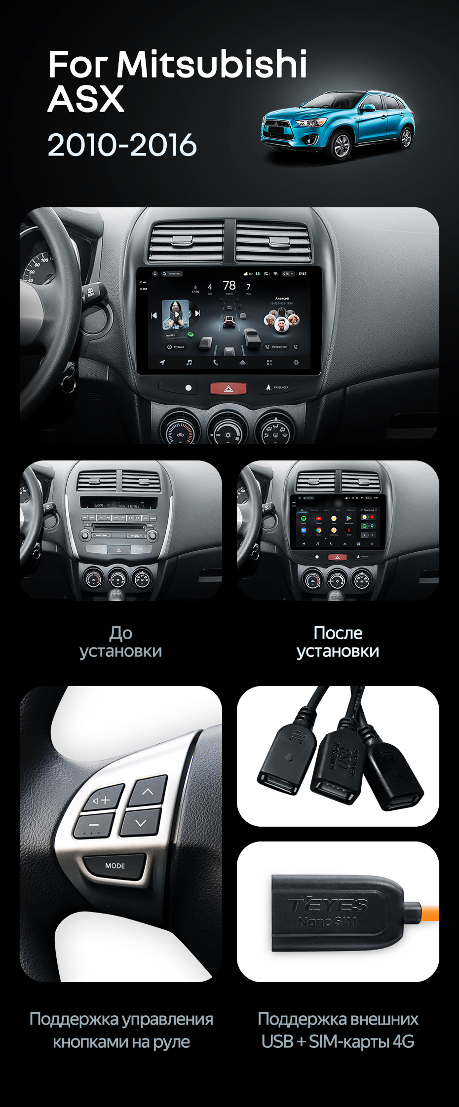 Штатная магнитола Teyes CC4 Pro 12/256 Mitsubishi ASX 1 (2010-2016) Тип-B - купить всего за 69 460 руб. в интернет-магазине в Энгельсе Teyes.com.ru. ✓ Самый лучший выбор мультимедиа ✓ Лучшая замена штатному ГУ ✓ Тел. +7 (800) 775-31-74