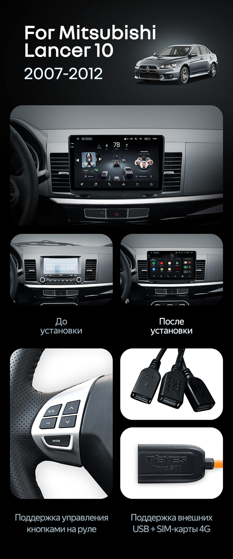 Штатная магнитола Teyes CC4 Pro 12/256 Mitsubishi Lancer 10 CY (2007-2012) Тип-A - купить всего за 68 440 руб. в интернет-магазине в Энгельсе Teyes.com.ru. ✓ Самый лучший выбор мультимедиа ✓ Лучшая замена штатному ГУ ✓ Тел. +7 (800) 775-31-74