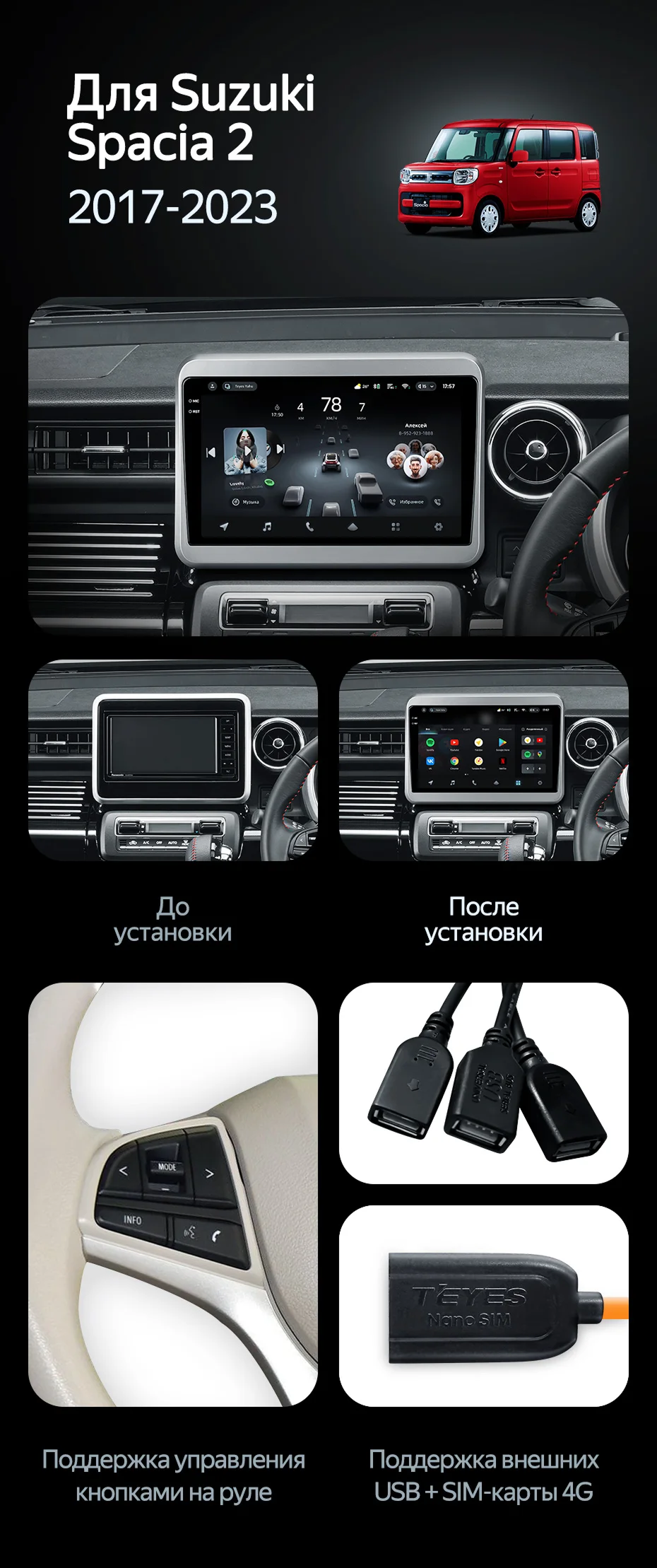 Штатная магнитола Teyes CC4 Pro 12/256 Suzuki Spacia 2 (2017-2023) - купить всего за 68 500 руб. в интернет-магазине в Энгельсе Teyes.com.ru. ✓ Самый лучший выбор мультимедиа ✓ Лучшая замена штатному ГУ ✓ Тел. +7 (800) 775-31-74