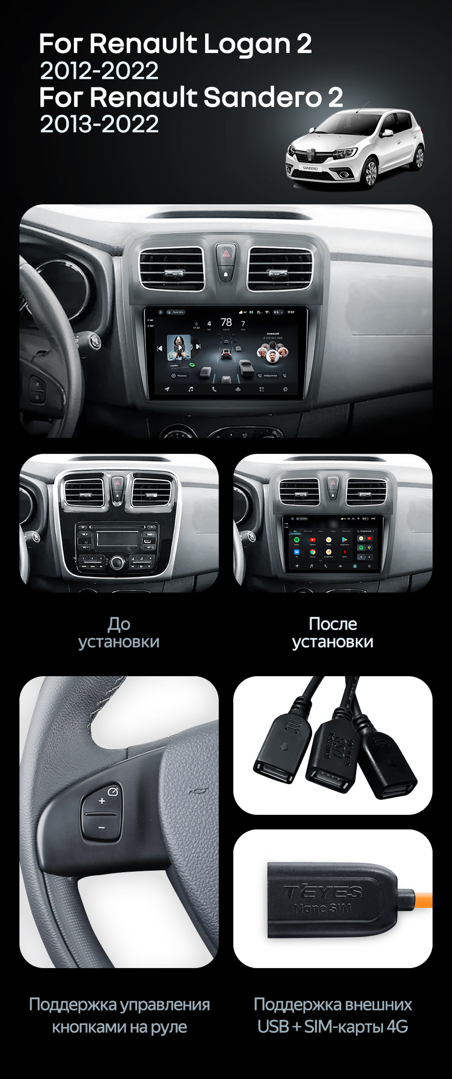 Штатная магнитола Teyes CC4 Pro 8/128 Renault Logan 2 (2012-2022) F2 - купить всего за 58 400 руб. в интернет-магазине в Энгельсе Teyes.com.ru. ✓ Самый лучший выбор мультимедиа ✓ Лучшая замена штатному ГУ ✓ Тел. +7 (800) 775-31-74