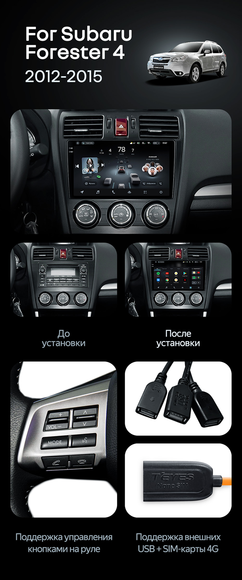 Штатная магнитола Teyes CC4 Pro 8/128 Subaru Forester 4 SJ (2012-2015) Тип-A - купить всего за 58 200 руб. в интернет-магазине в Энгельсе Teyes.com.ru. ✓ Самый лучший выбор мультимедиа ✓ Лучшая замена штатному ГУ ✓ Тел. +7 (800) 775-31-74