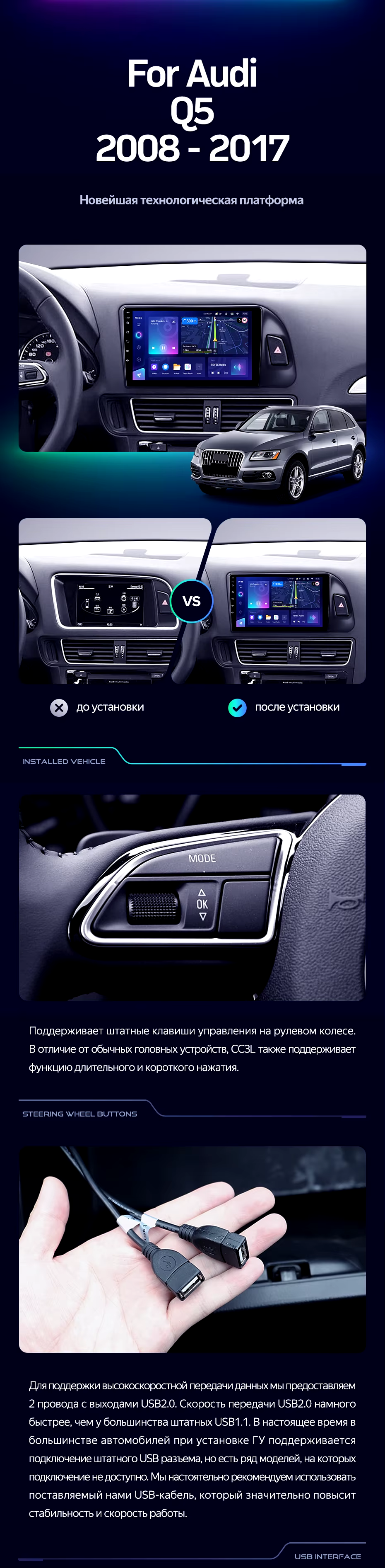 Штатная магнитола Teyes CC4L 6/64 Audi Q5 8R (2008-2017) Тип-B - купить всего за 35 400 руб. в интернет-магазине в Энгельсе Teyes.com.ru. ✓ Самый лучший выбор мультимедиа ✓ Лучшая замена штатному ГУ ✓ Тел. +7 (800) 775-31-74