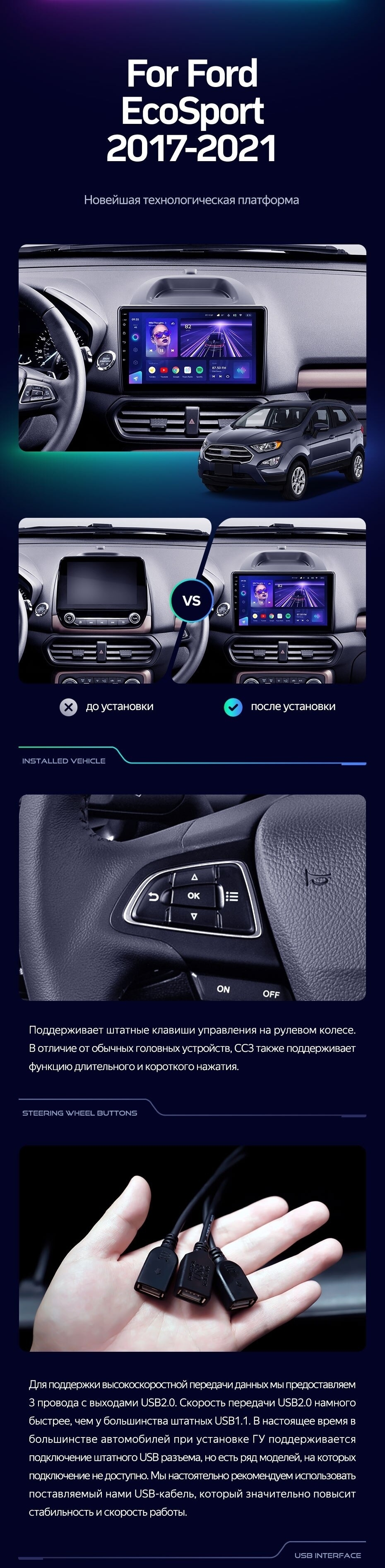 Штатная магнитола Teyes CC4L 6/64 Ford EcoSport (2017-2021) - купить всего за 31 600 руб. в интернет-магазине в Энгельсе Teyes.com.ru. ✓ Самый лучший выбор мультимедиа ✓ Лучшая замена штатному ГУ ✓ Тел. +7 (800) 775-31-74