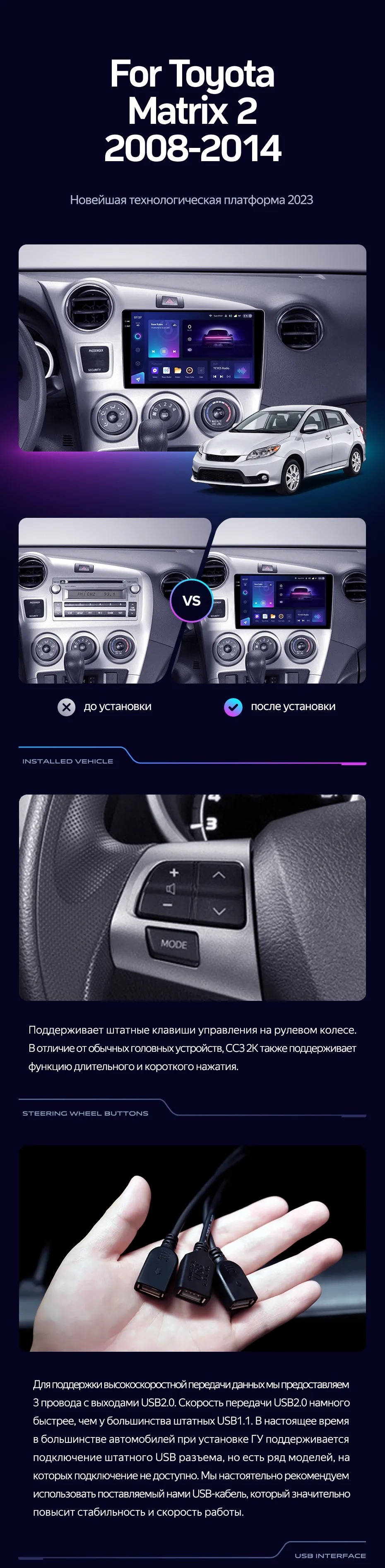 Штатная магнитола Teyes CC4L 6/64 Toyota Matrix 2 E140 (2008-2014) - купить всего за 32 400 руб. в интернет-магазине в Энгельсе Teyes.com.ru. ✓ Самый лучший выбор мультимедиа ✓ Лучшая замена штатному ГУ ✓ Тел. +7 (800) 775-31-74