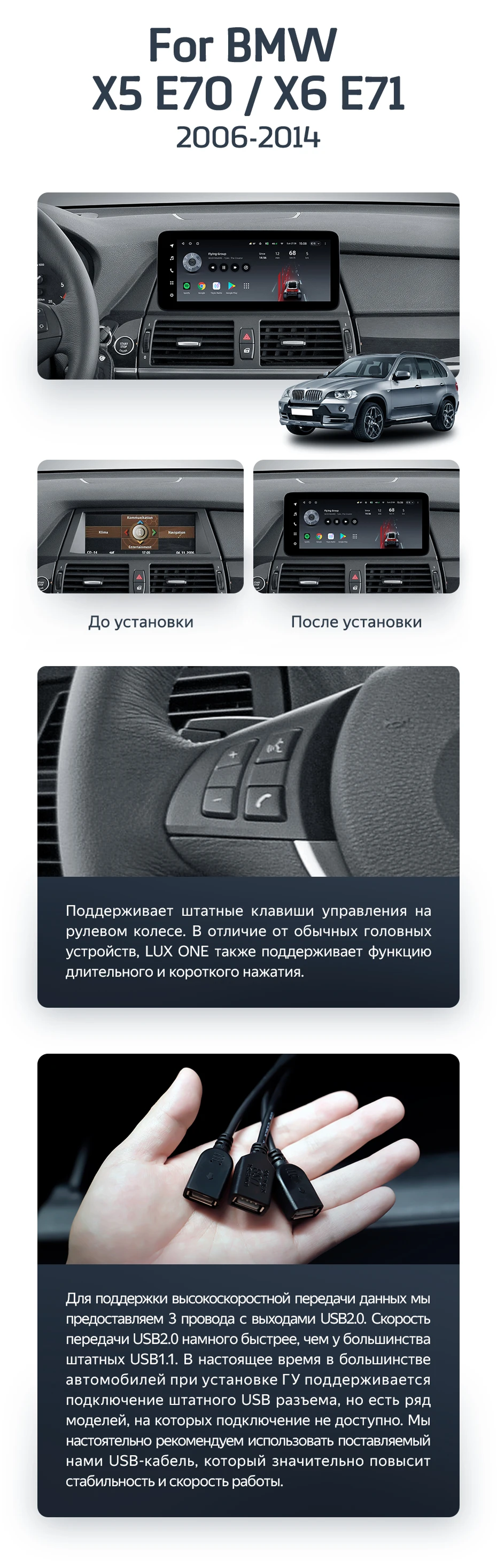Штатная магнитола Teyes LUX ONE 360 6/128 BMW X6 E71 (CIC) (2006-2014) Universal - купить всего за 59 600 руб. в интернет-магазине в Энгельсе Teyes.com.ru. ✓ Самый лучший выбор мультимедиа ✓ Лучшая замена штатному ГУ ✓ Тел. +7 (800) 775-31-74