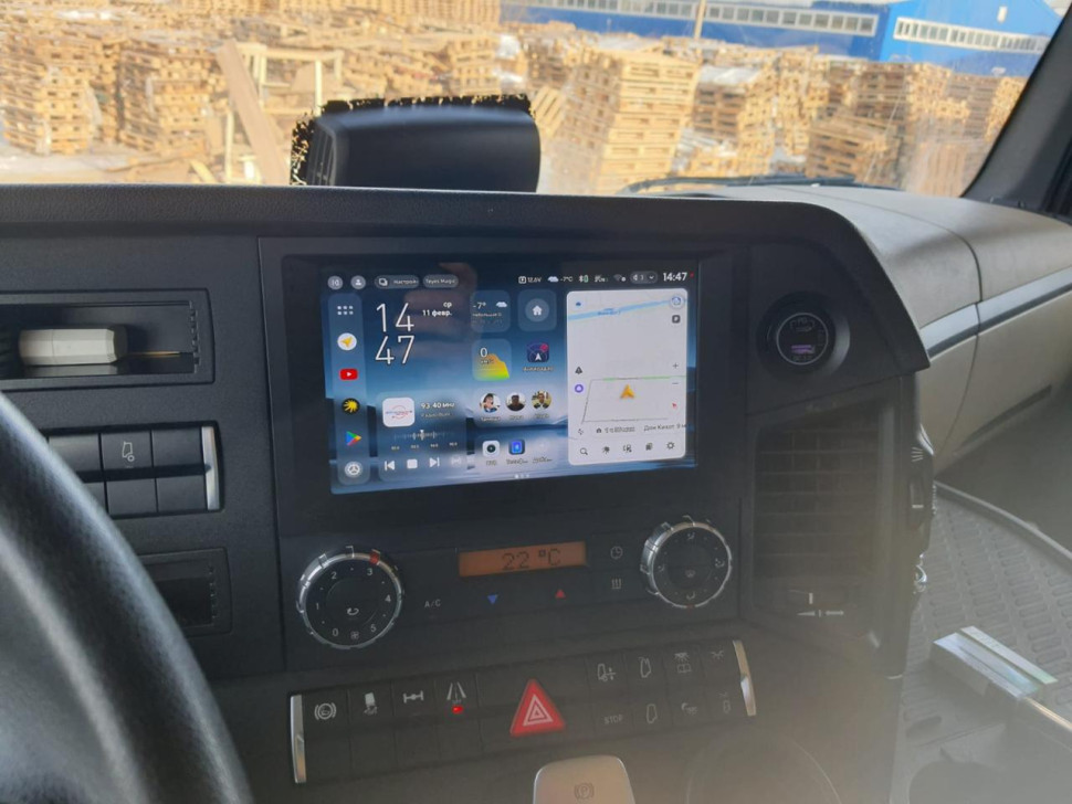 Готовый установочный комплект для магнитолы Mercedes-Benz Actros (2011-2023) 9 дюймов в штатное место, включает переходную рамку и проводку.