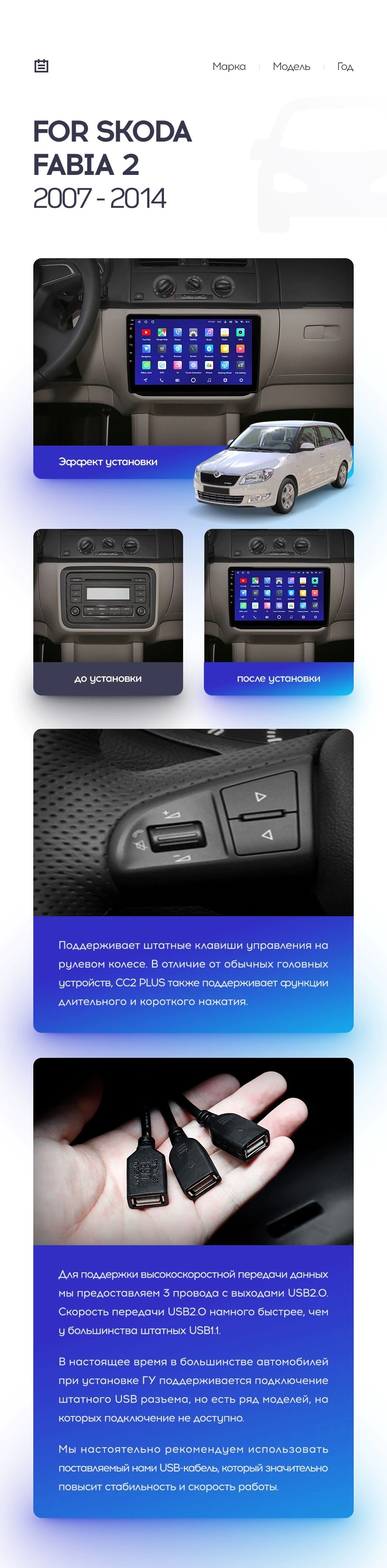 Полный комплект установки магнитолы Teyes с рамкой и проводкой можно выбрать в каталоге штатных магнитол Skoda Fabia 2 (2007-2014).